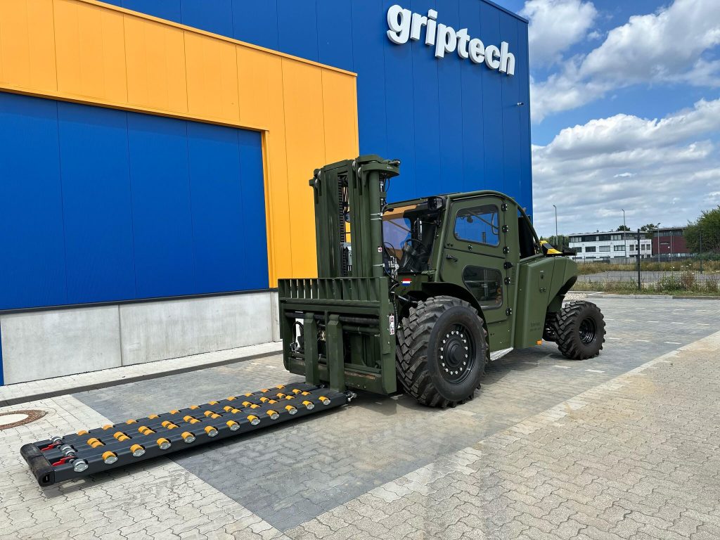 Equipped with KOOI® Rollerized Tine Extenders (RTE) from Meijer Handling Solutions and the high-precision STD PRO Weighing System from Griptech, the Bomaq forklift demonstrates how smart integration can significantly elevate operational performance. Together, these technologies enable faster handling, improved safety, and precise load control — even in extreme or mission-critical environments.